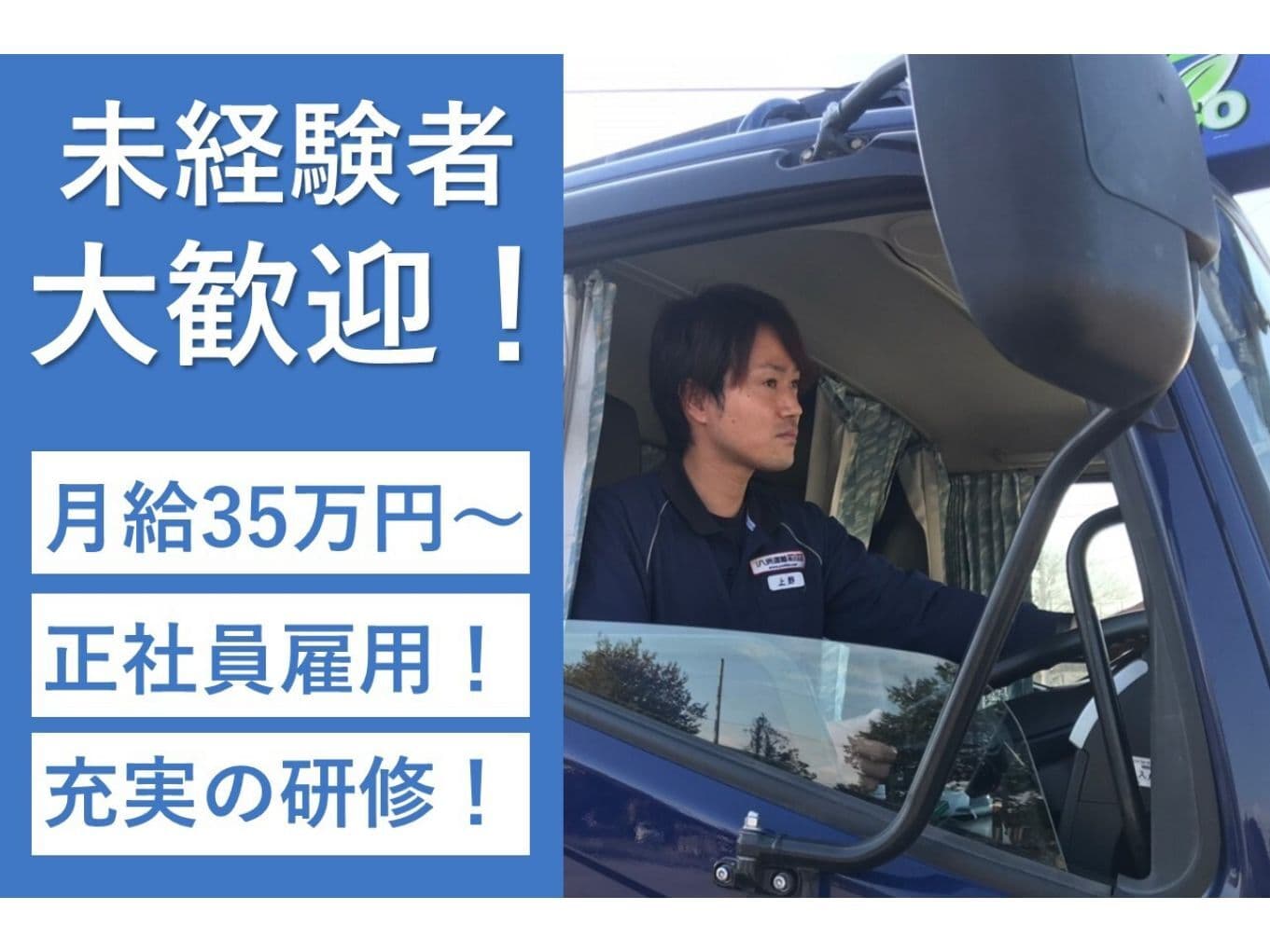 大型免許を持っていなくてもご応募いただけます! 入社後に会社の補助を受けて免許を取得できます。