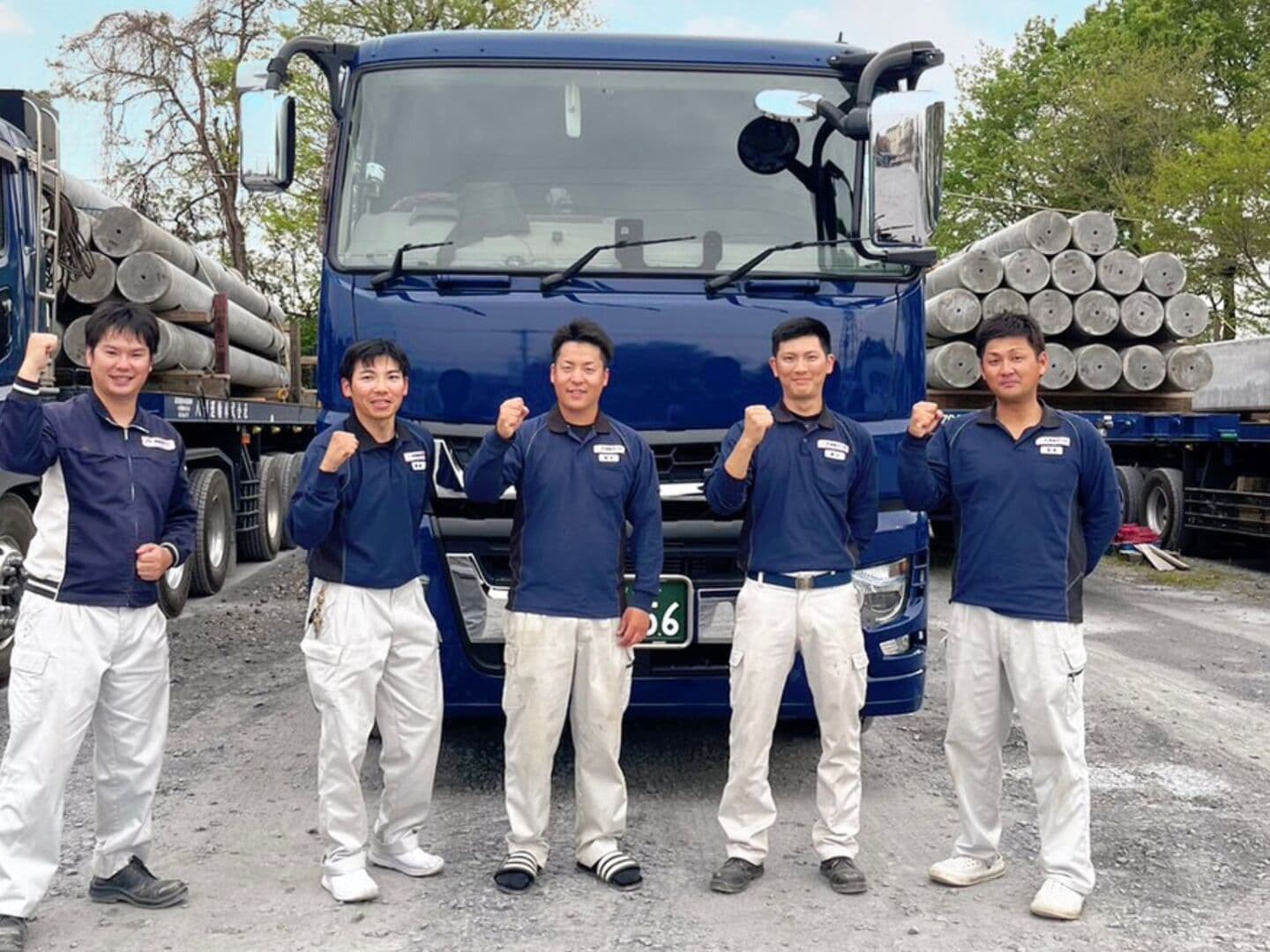 当社は昭和23年に創業して以来、工事現場や置場への電柱の輸送やコンクリート製品といった重量物の輸送を行っています。